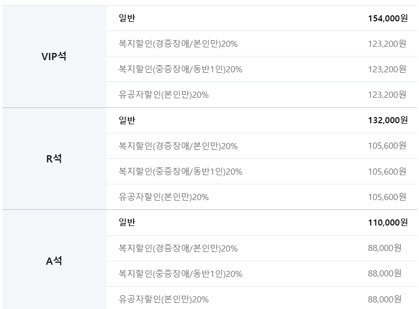 • VIP석: 154,000원