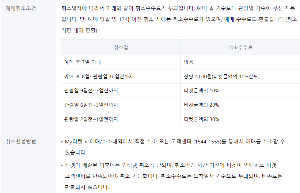 • 예매 당일 밤 12시 이전 취소수수료는 없습니다.